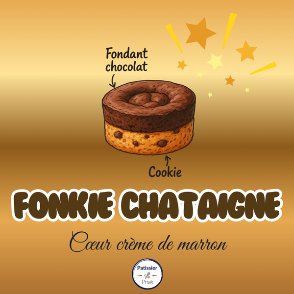 ✨Découvrez mes Fonkie : une base de cookie irrésistible déclinée en 4 parfums gourmands — noisette, pistache, chocolat ou chataigne — surmontée d’un fondant chocolat et d’une généreuse pâte à tartiner ou creme de marron